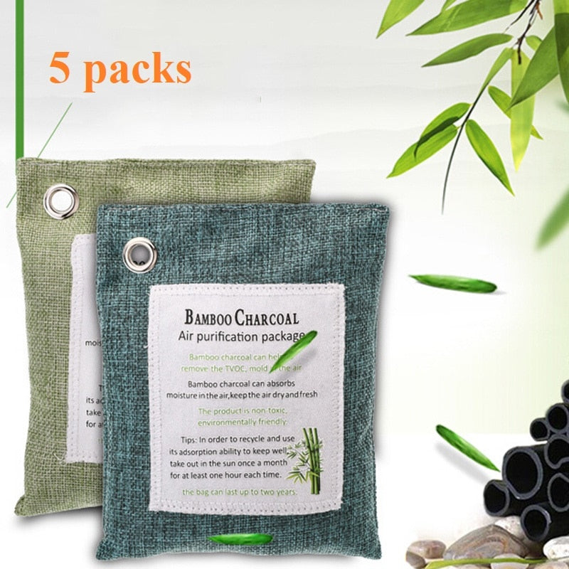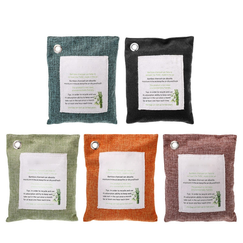 It's perfectly stitched bag is filled with 100 gr of natural bamboo charcoal, which effectively absorbs and removes odors, allergens, and harmful pollutants.